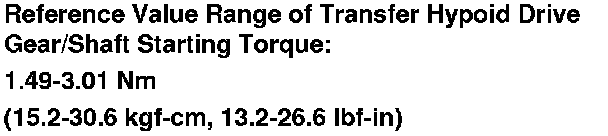 38. Check that the calculated transfer hypoid drive gear/shaft starting torque is within the following reference value range.