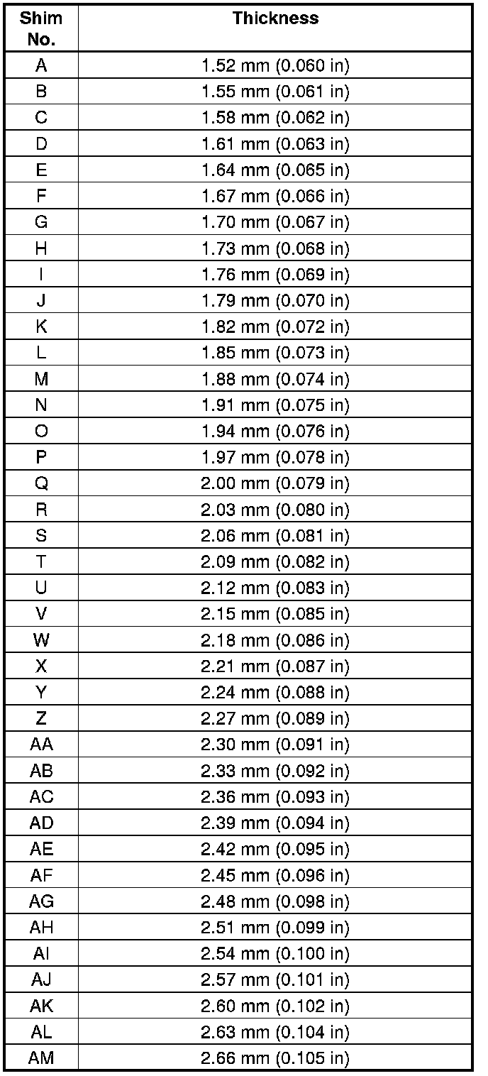 - Increase the thickness of the 80 mm thrust shim (see step 39) by the amount the 25 mm thrust shim was reduced.