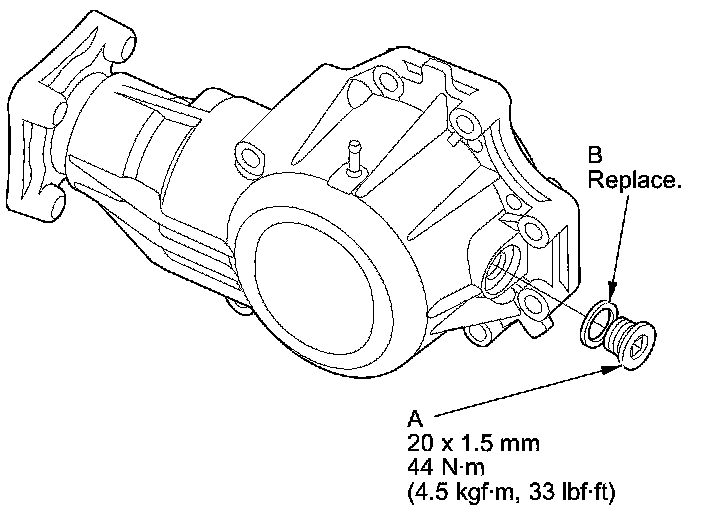46. Install the filler plug with a new sealing washer (B).