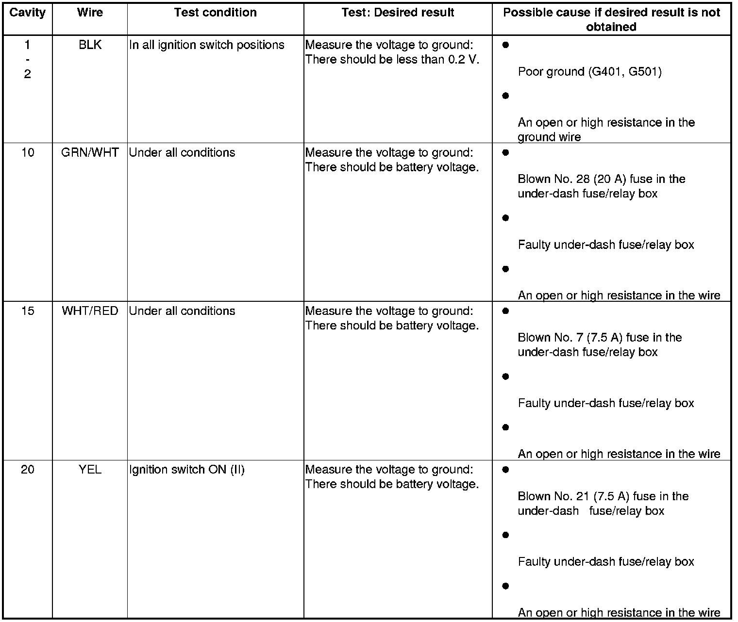 6. With the connector still disconnected, do the following input tests: