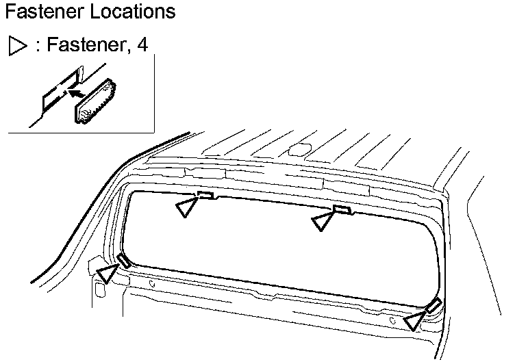 10. Attach the fasteners with adhesive tape to the back window opening flange of the body on both sides.