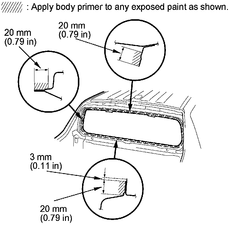 - Never touch the primed surfaces with your hands. If you do, the adhesive may not bond to the back window properly, causing a leak after the back window is installed.