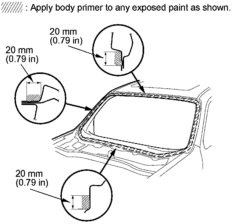 - Never touch the primed surfaces with your hands. If you do, the adhesive may not bond to the windshield properly, causing a leak after the windshield is installed.