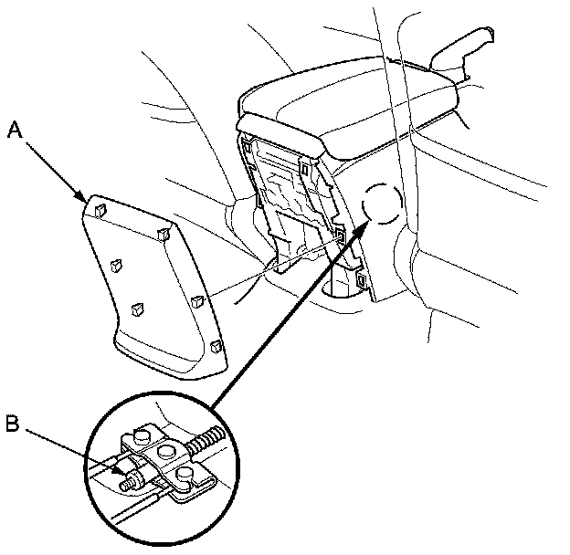 2. Pull out the center console rear trim (A) Center Console Rear Trim Removal/Installation.