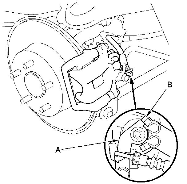 6. Make sure the lever (A) on the rear brake caliper contacts the arm (B).