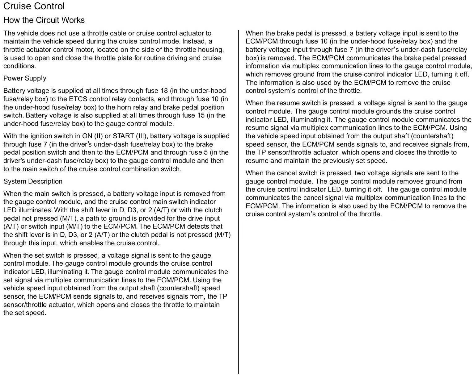 Cruise Control: Description and Operation