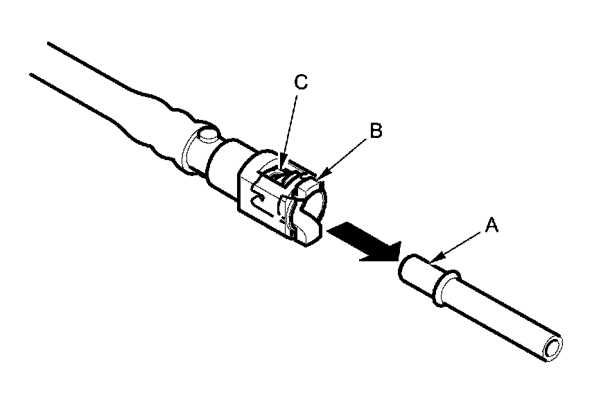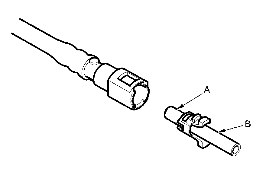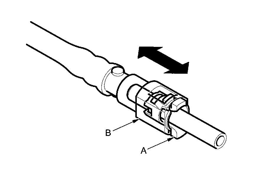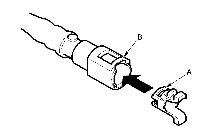 2. Insert a new retainer (A) into the connector (B) if the retainer is damaged, or after: