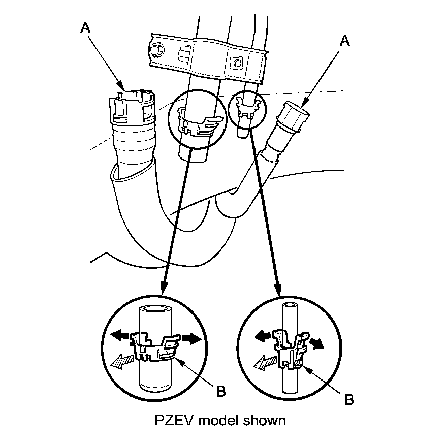 Connection to new fuel line: Fuel fill neck tube (PZEV model)
