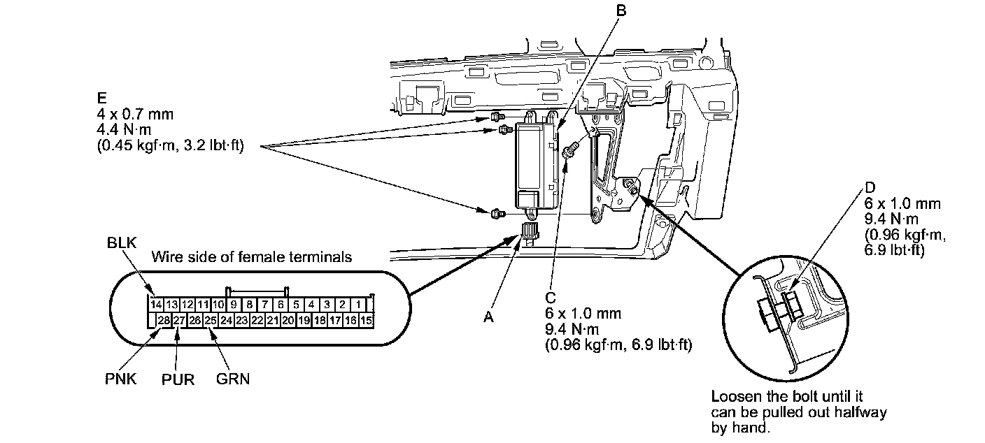 1. Remove the passenger's dashboard undercover Passenger's Dashboard Undercover Removal/Installation.