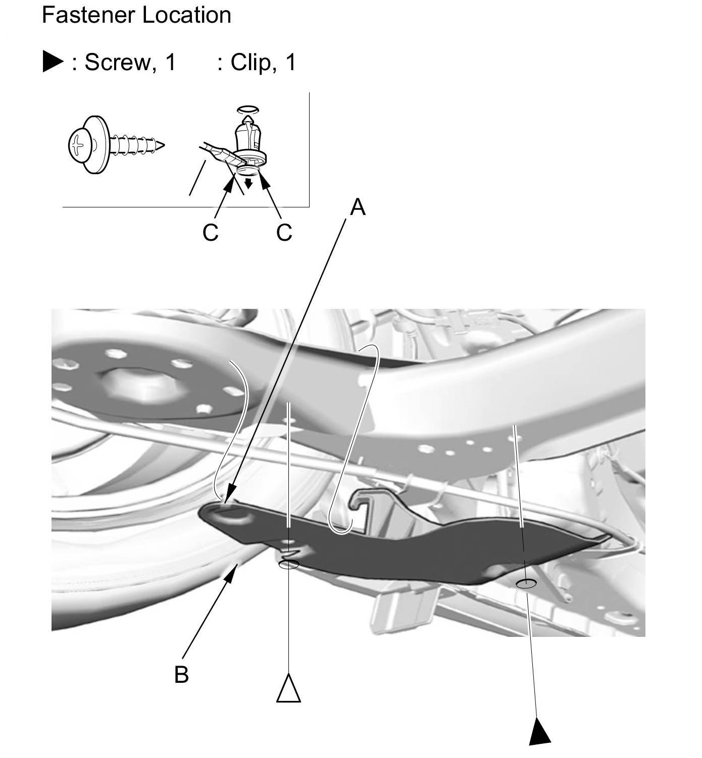 NOTE: To release the clip, pry up on the center pin at the notch (C).