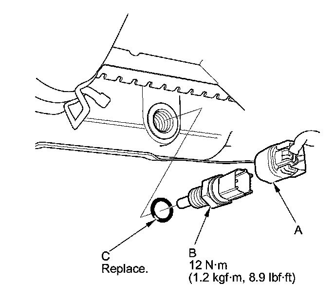 5. Install the parts in the reverse order of removal with a new O-ring (C), then refill the radiator with engine coolant Service and Repair.