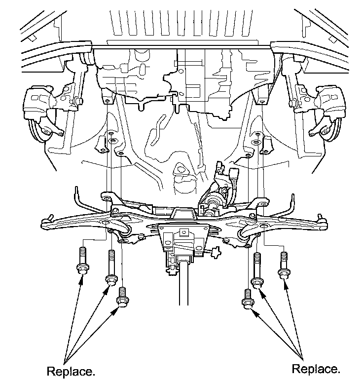 12. Install the front subframe, then loosely install the new front subframe mounting bolts.