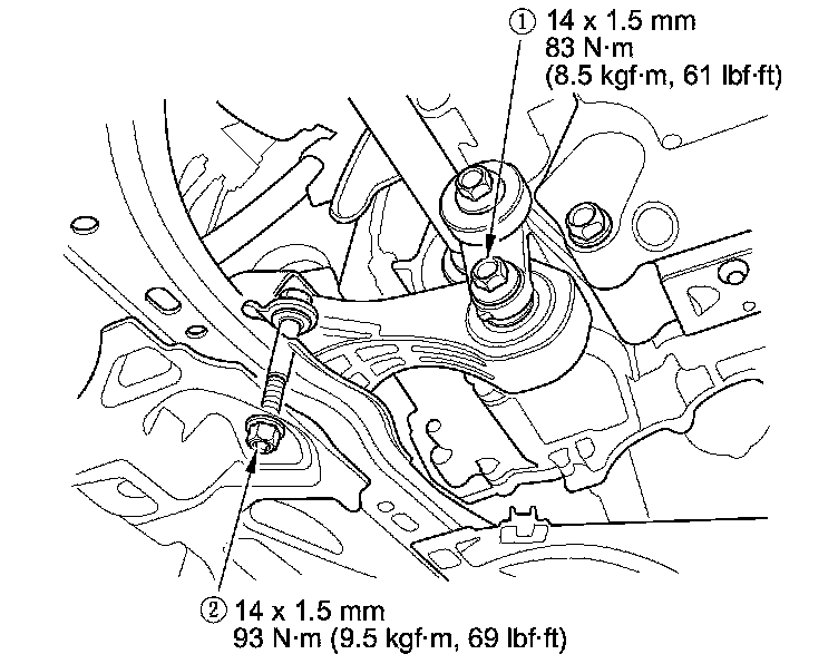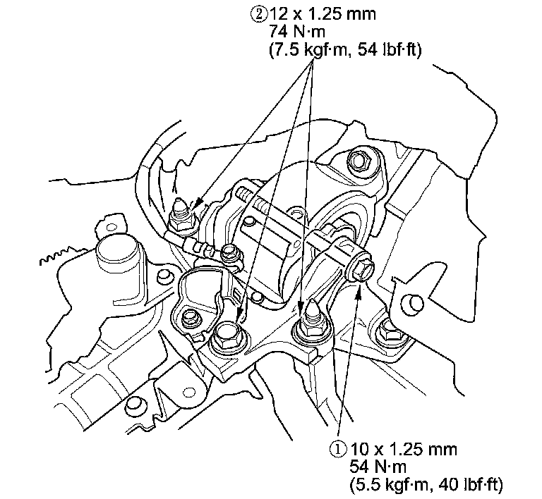 23. Tighten the torque rod mounting bolt and nut in the numbered sequence shown.