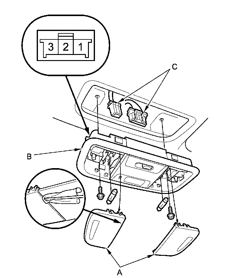 6. If the continuity is not as specified, check the bulb. If the bulb is OK, replace the individual map light.