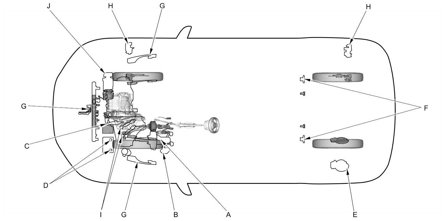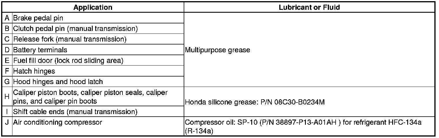 - Lubricate the following areas using the recommended lubricants and fluids.