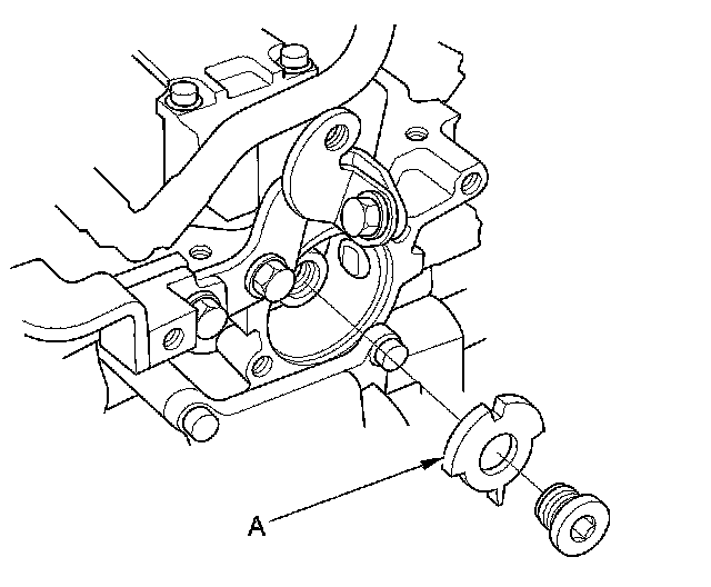 3. Install the camshaft thrust cover (A) with a new O-ring (B).