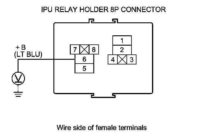 14. Measure the voltage between IPU relay holder (MCM relay 1) 8P connector terminal No. 6 and body ground.