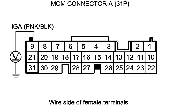 24. Measure the voltage between MCM connector terminal No. 9 and body ground.