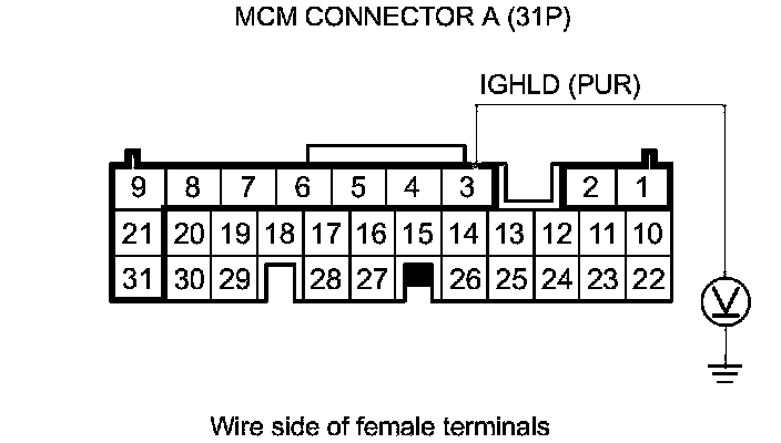 34. Measure the voltage between MCM connector terminal A3 and body ground.