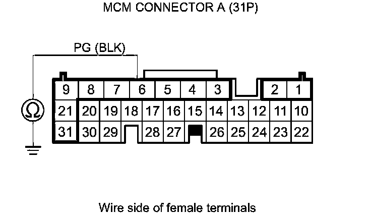 37. Check for continuity between MCM connector terminal A6 and body ground.