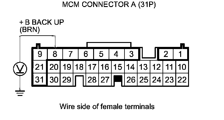 40. Measure the voltage between MCM connector terminal A8 and body ground.