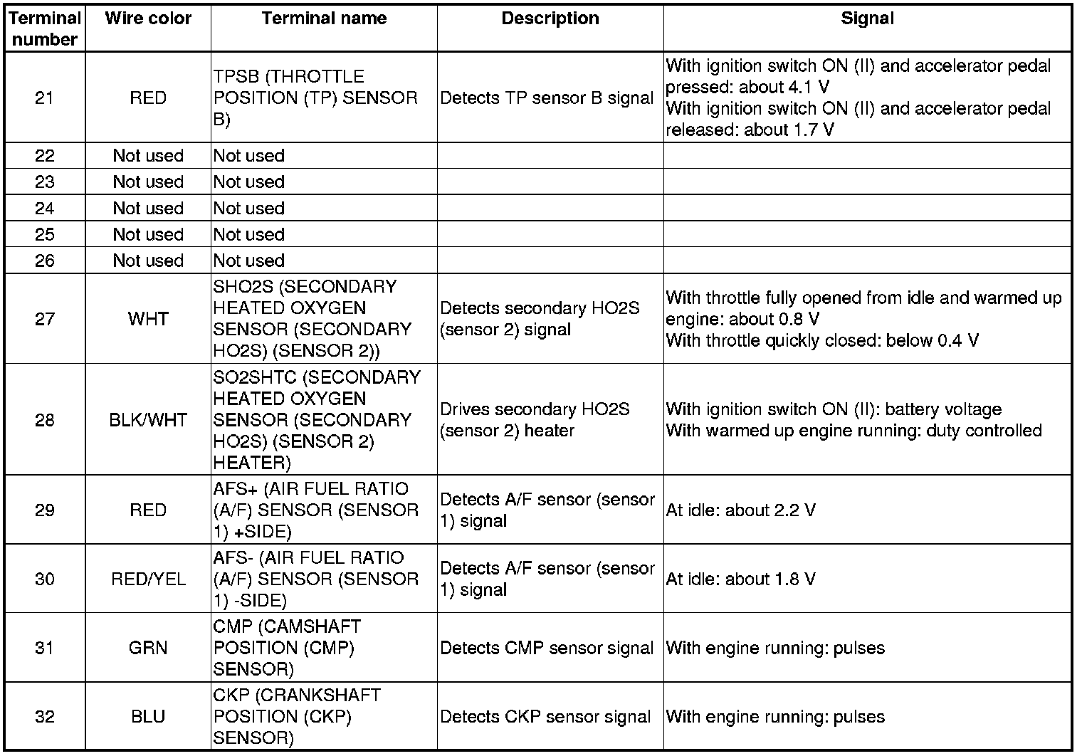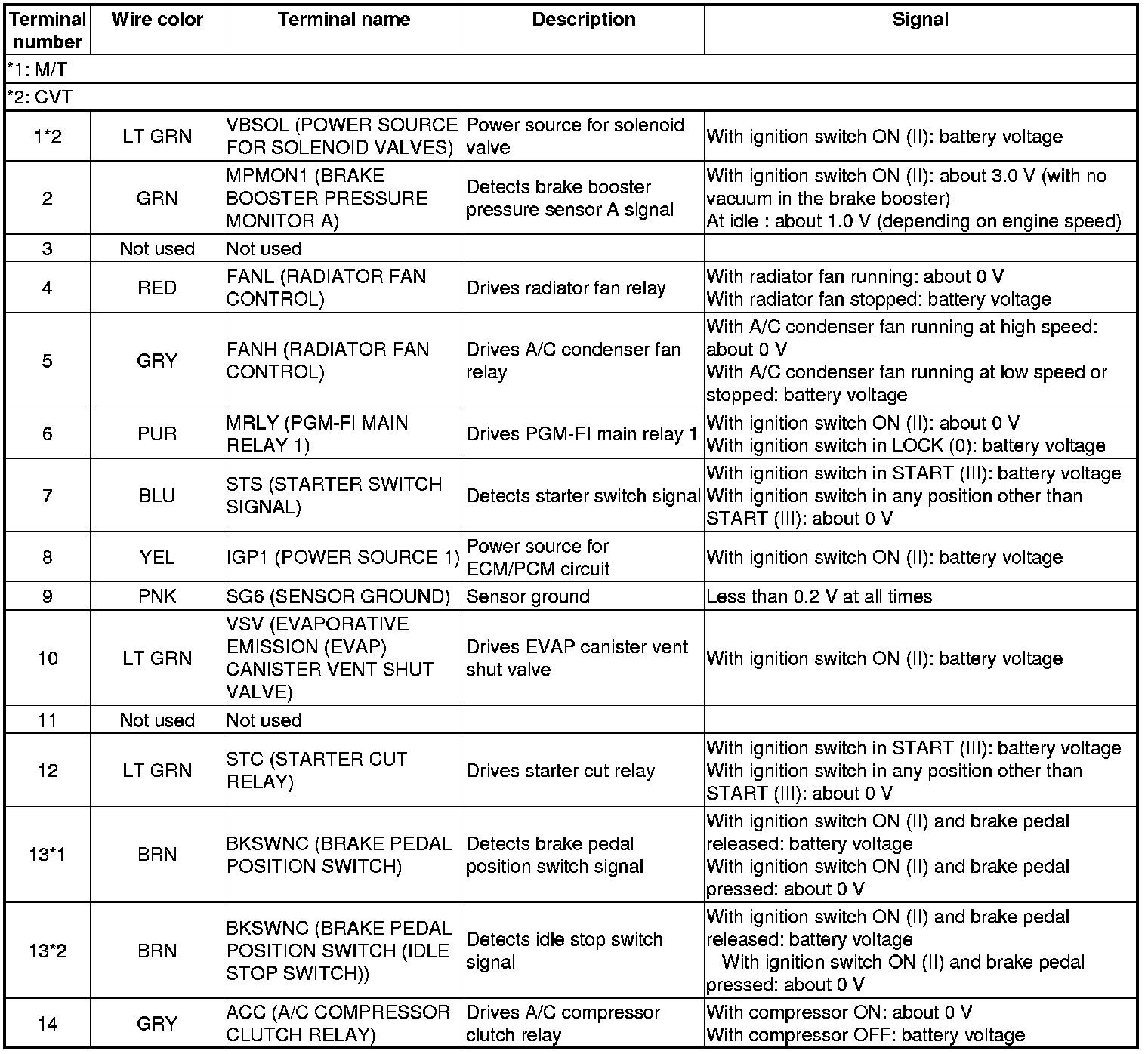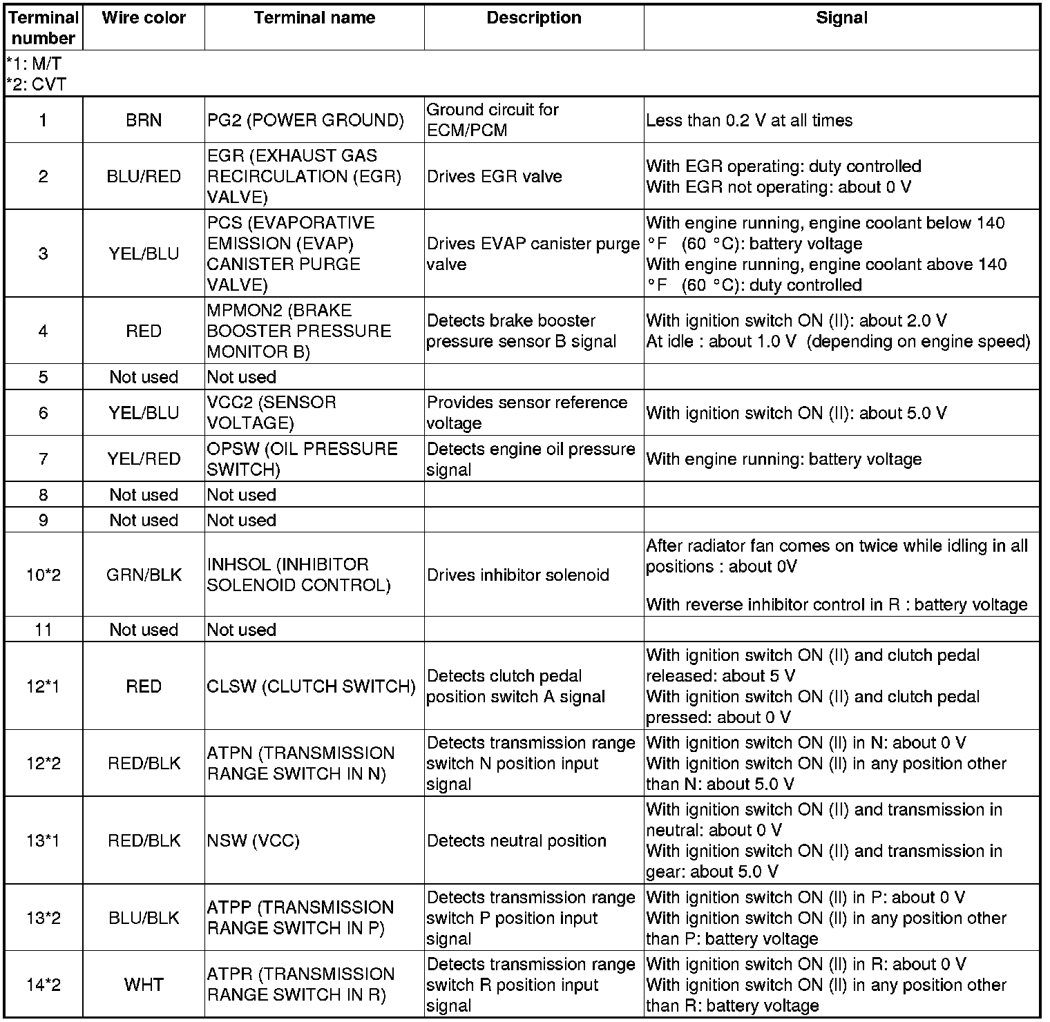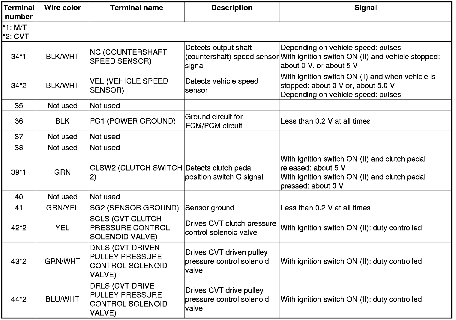 ECM/PCM Inputs and Outputs at ECM/PCM Connector B (triangle) (44P)
