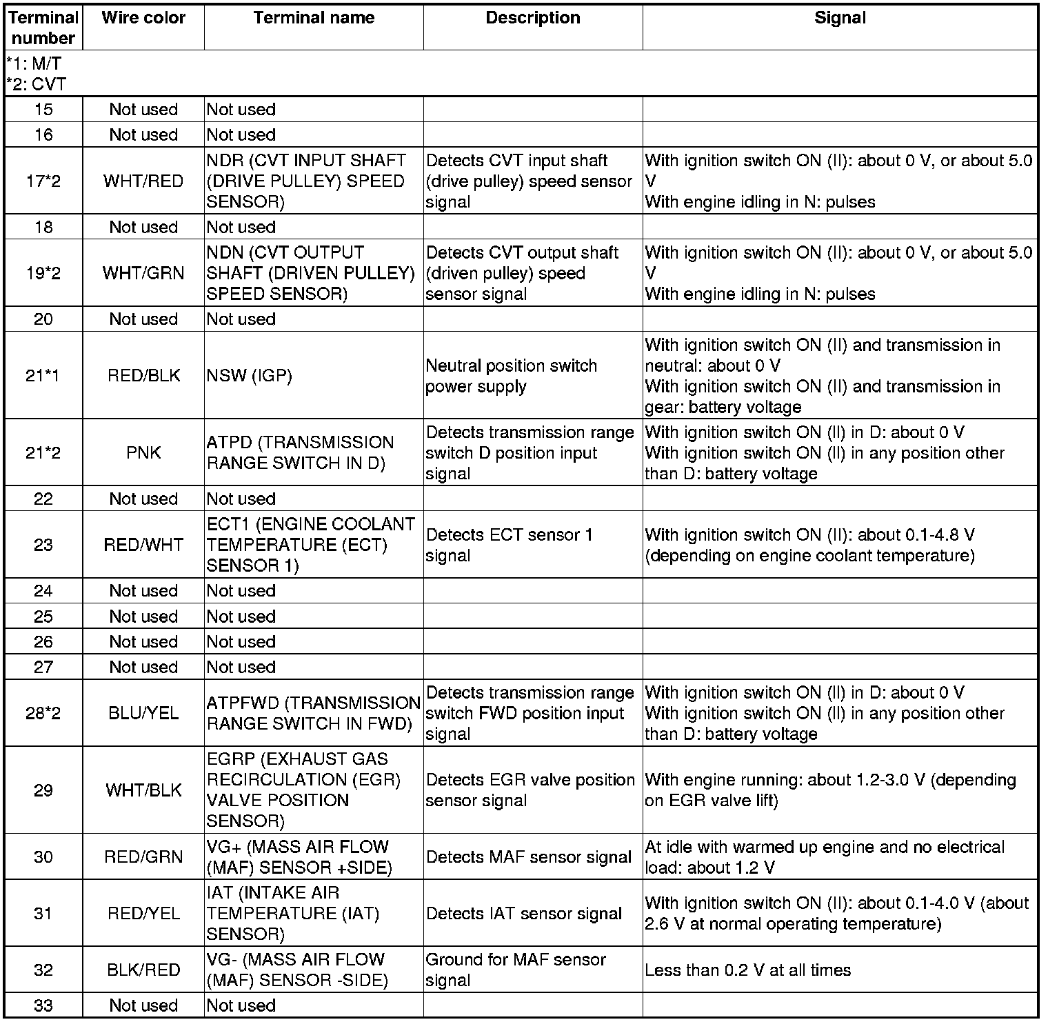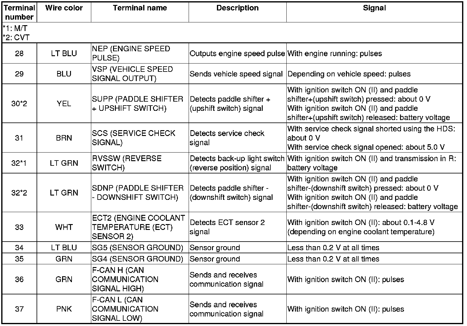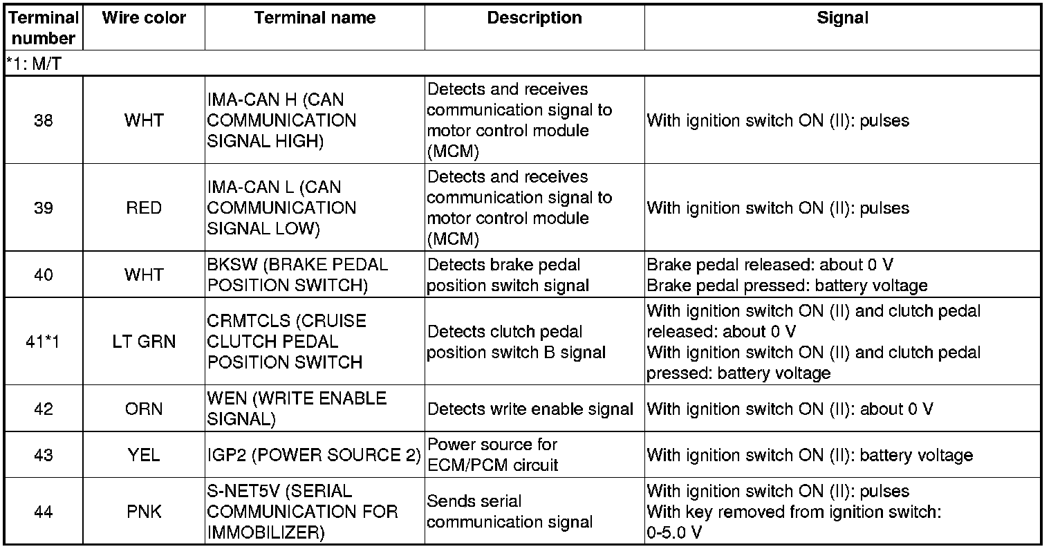 ECM/PCM Inputs and Outputs at ECM/PCM Connector C (circle) (44P)