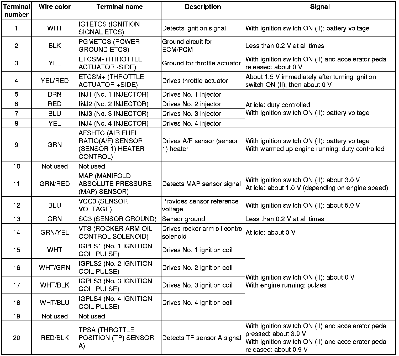 ECM/PCM Inputs and Outputs at ECM/PCM Connector A (square) (44P)