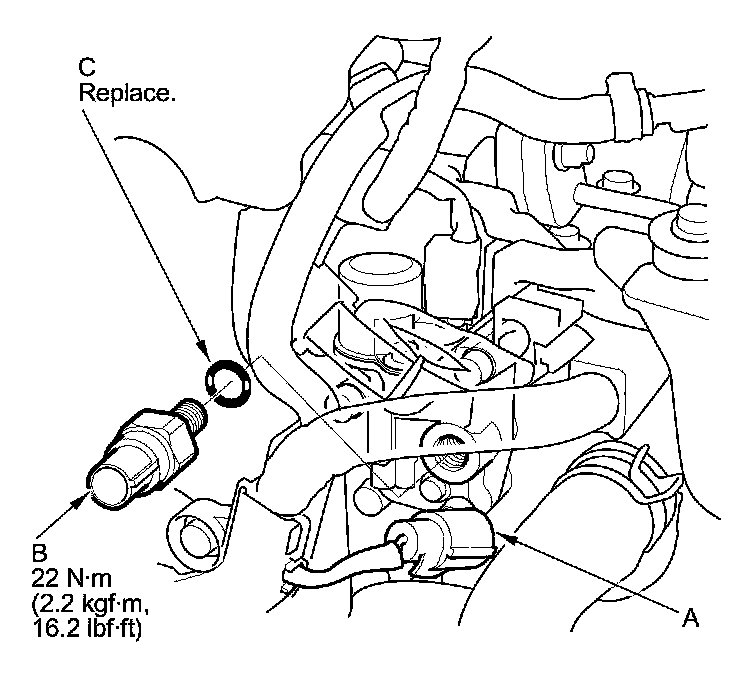 3. Install the parts in the reverse order of removal with a new O-ring (C).