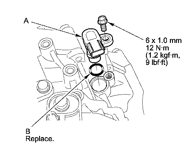 8. Remove the vehicle speed sensor (A) and the O-ring (B).