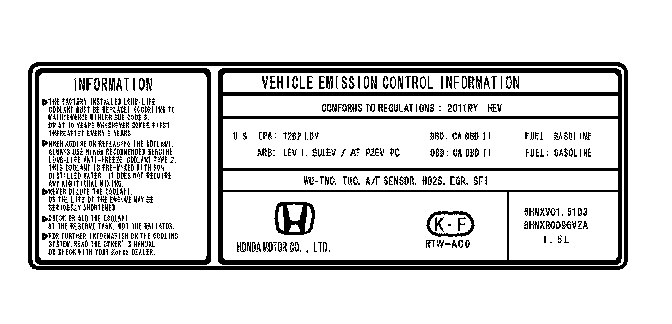 CONFORMS TO REGULATIONS: 2011 MY HEV
