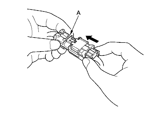 Hold both connector halves, and press them firmly together until the projection (A) of the sleeve-side connector clicks.