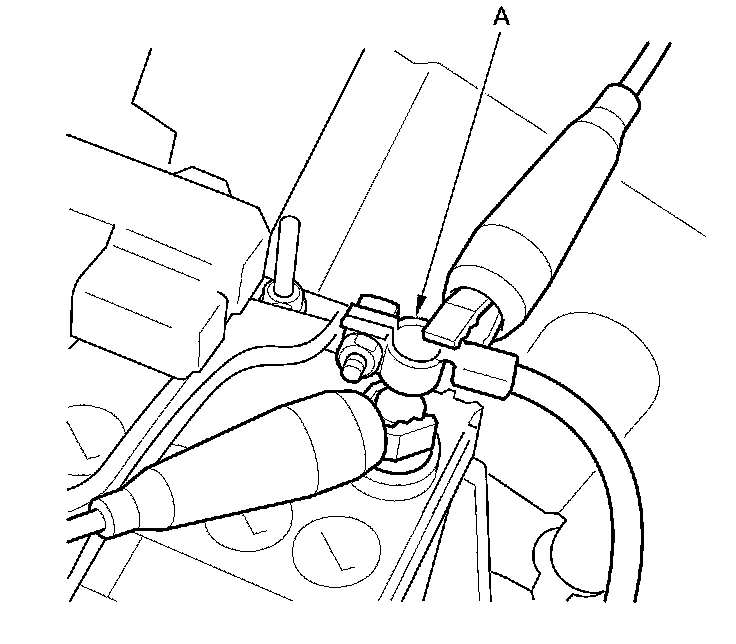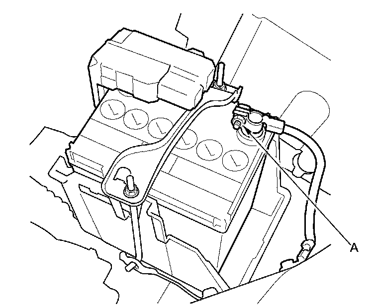 15. Disconnect the negative terminal (A) of the battery ground cable from the battery negative terminal.
