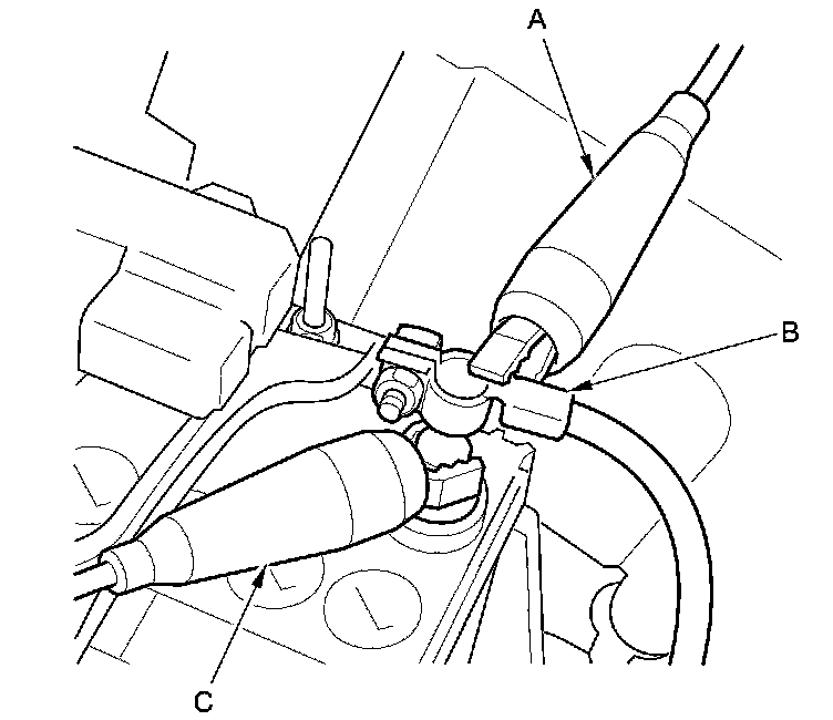 NOTE: Be careful not to disconnect the battery ground cable terminal from the battery negative terminal.