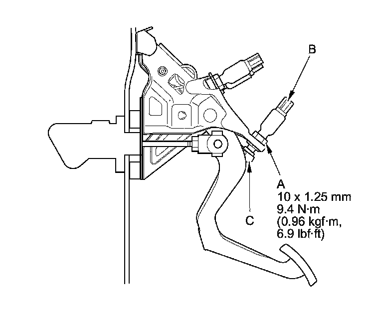 21. Adjust clutch pedal position switch C when the HDS screen indicates CLOSE to OPEN.