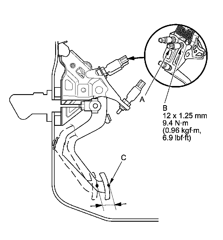 NOTE: Measure the clutch pedal height from middle of the clutch pedal cover or the clutch pedal pad cover (C).