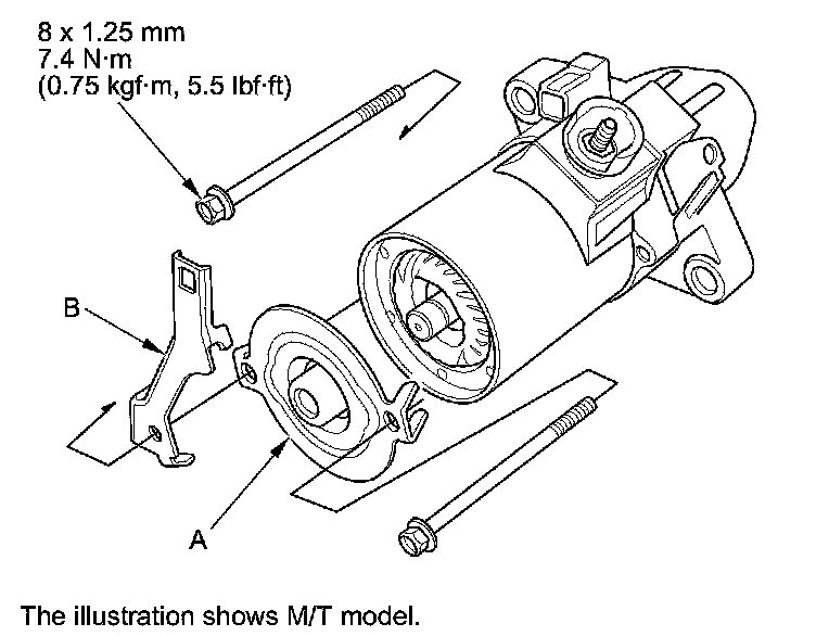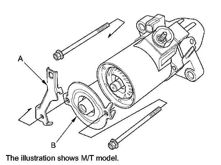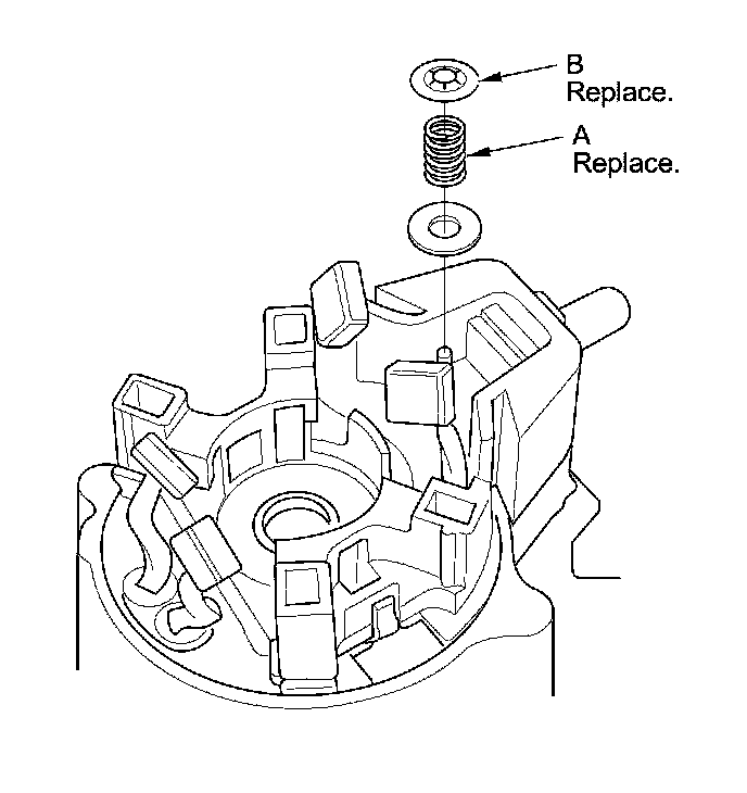 12. Check for continuity between the (+) brushes (A) and the (-) brushes (B). If there is continuity, replace the brush holder set.
