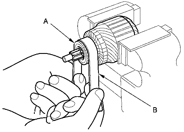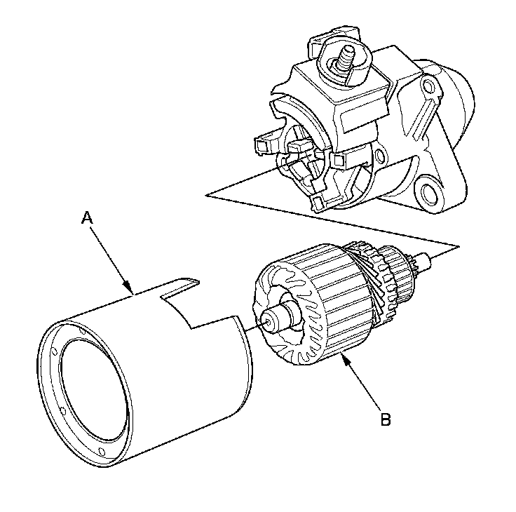 22. Install the armature and the brush holder assembly (A) into the armature housing (B).