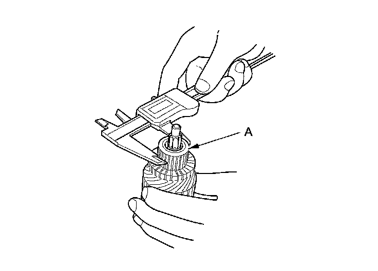 5. Check the commutator (A) diameter with a digital caliper or dial type caliper. If the diameter is below the service limit, replace the armature.