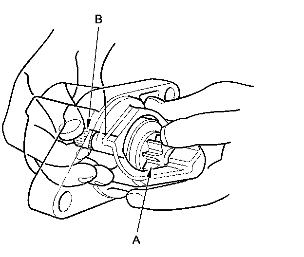 16. Holding the drive gear (A), turn the gear shaft (B) clockwise. Check that the drive gear comes out to the other end. If the drive gear does not move smoothly, replace the gear cover set.