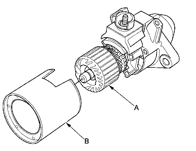 3. Remove the armature housing (A) and the armature (B).