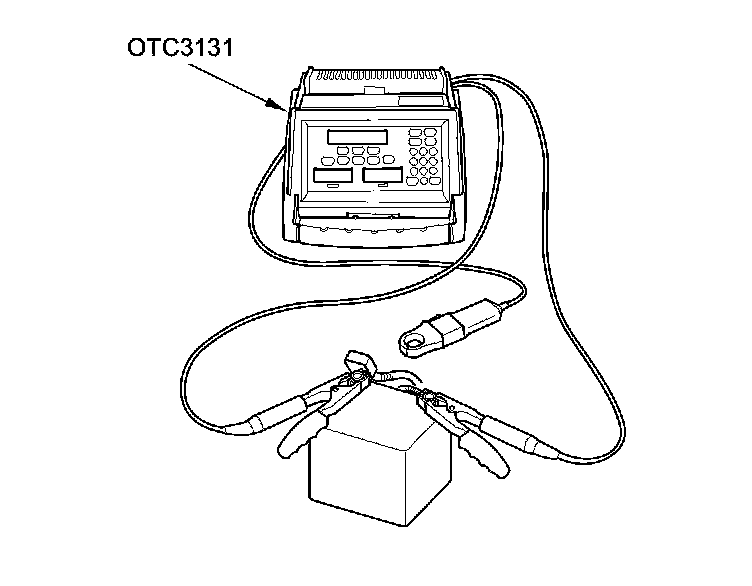 1. Connect the alternator, regulator, battery, and starter tester (OTC3131) to the battery as shown.