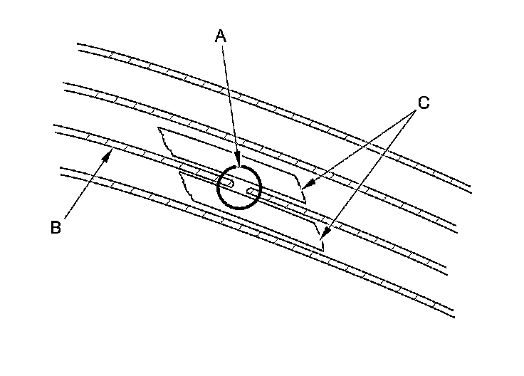 2. Carefully mask above and below the broken portion of the rear antenna ground (B) with cellophane tape (C).