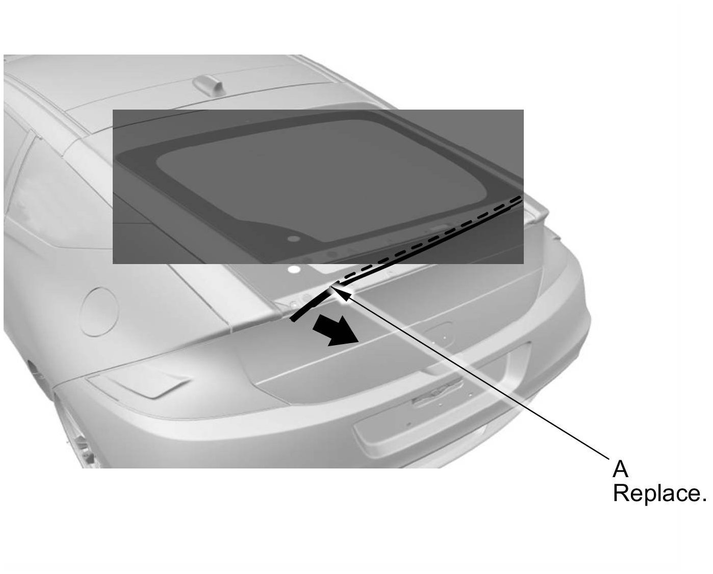 2. Remove the lower seal (A) from the edge of the upper rear window. If necessary, cut the lower seal with a utility knife.