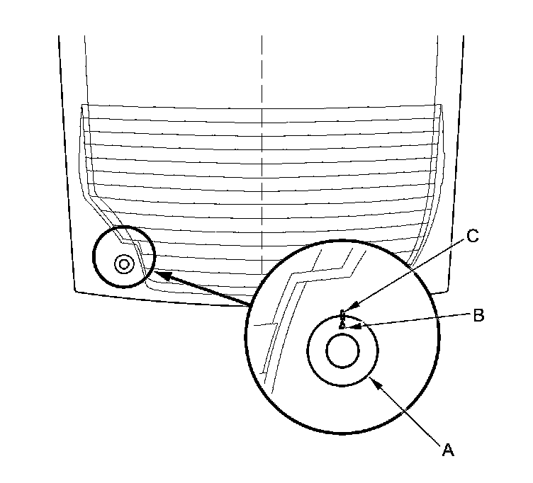 10. If you are installing the new upper rear window, install the rear wiper seal (A) on the upper rear window with its alignment mark (B) aligned with the mark (C) on the upper rear window.