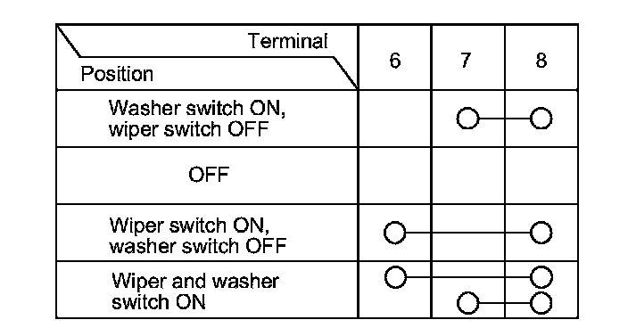 5. Check for continuity between the terminals in each switch position according to the table.