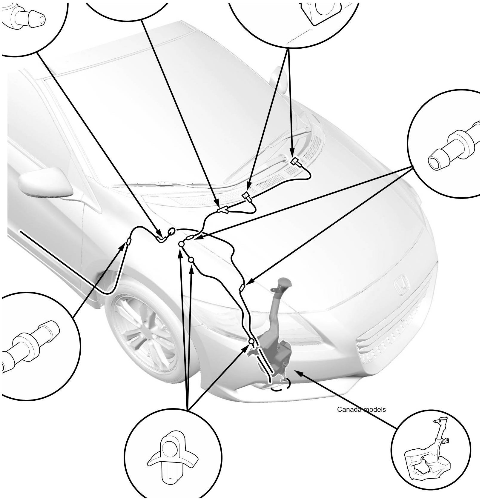 2. Remove the washer nozzles and clips, then remove the tubes.
