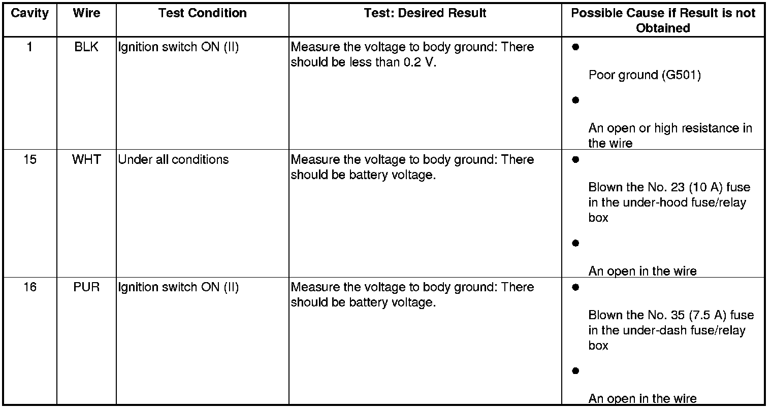 - If the input test proves OK, the HandsFreeLink control unit must be faulty, replace it.