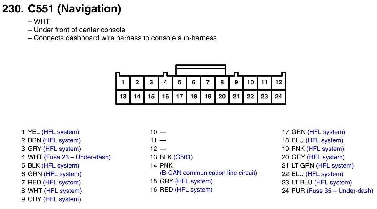 View 230 - C551 Connector View (Navigation)