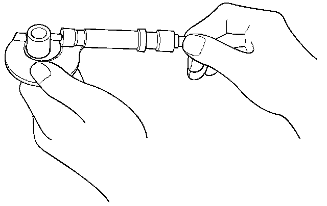 1. Assemble the piston base (A), the piston base spring (B), the piston pin base insert (C), and the piston base head (D) as shown.